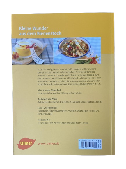 Gutes aus Honig, Pollen, Propolis, Gelée Royale und Bienenwachs können Sie ganz einfach selbst herstellen. Die leidenschaftliche Imkerin Dr. Annette Schroeder verrät Ihnen ihre besten Rezepte zum Gesundbleiben, Wohlfühlen und Glücklichsein mit Produkten aus dem Bienenstock. Nebenbei erfahren Sie Interessantes über die wertvollen Rohstoffe aus der Natur und was sie zu kleinen Wundermitteln macht.